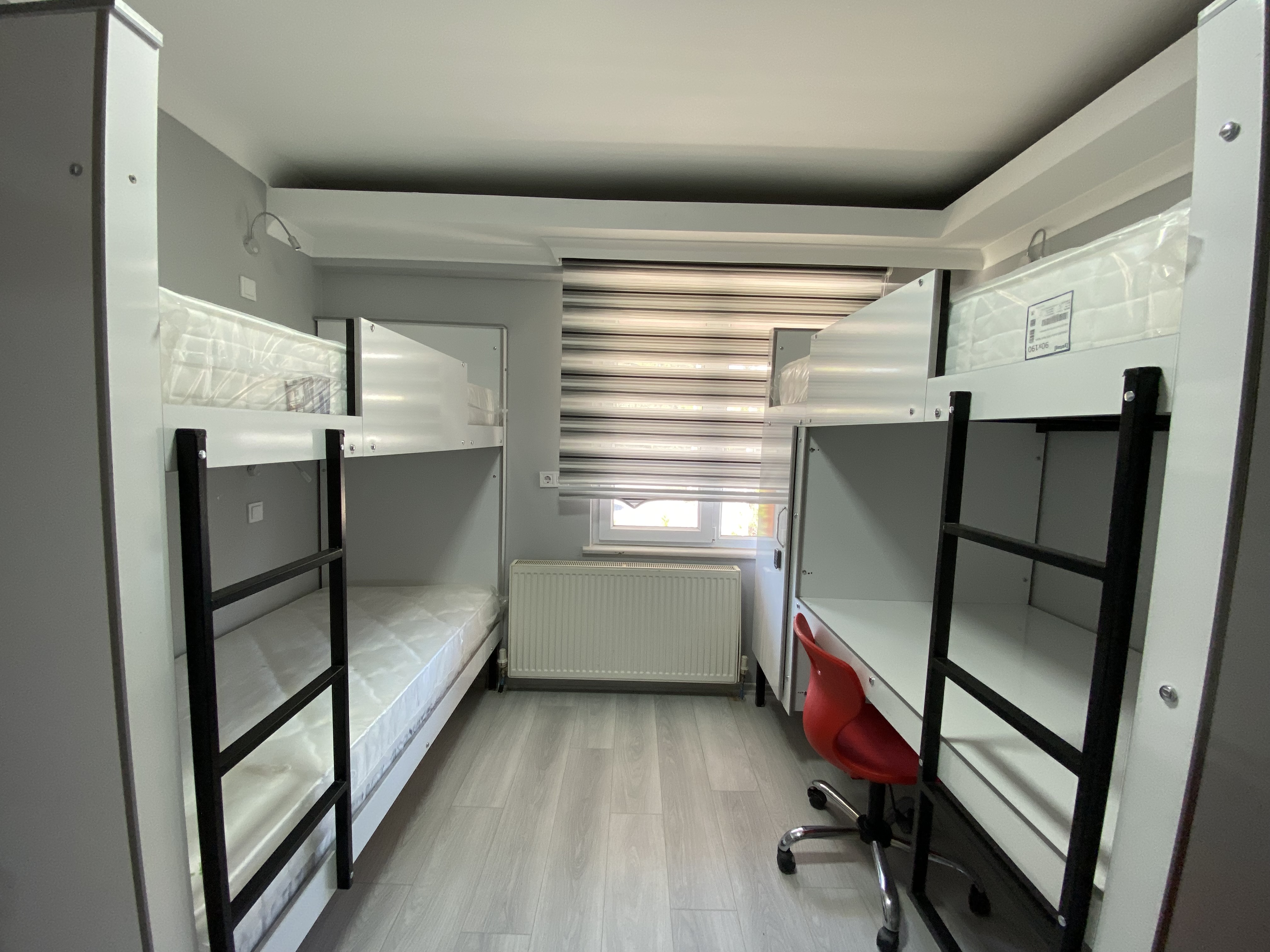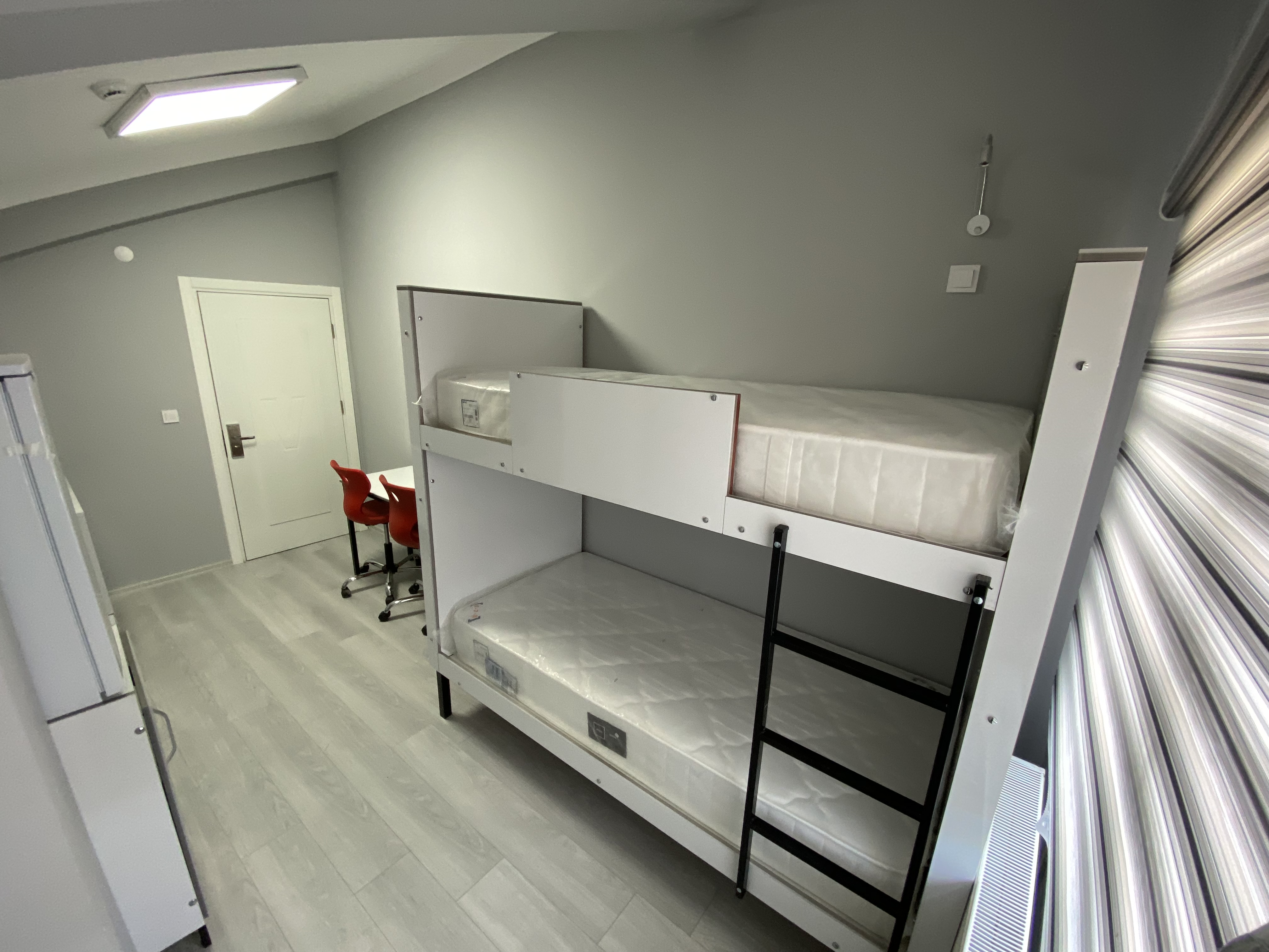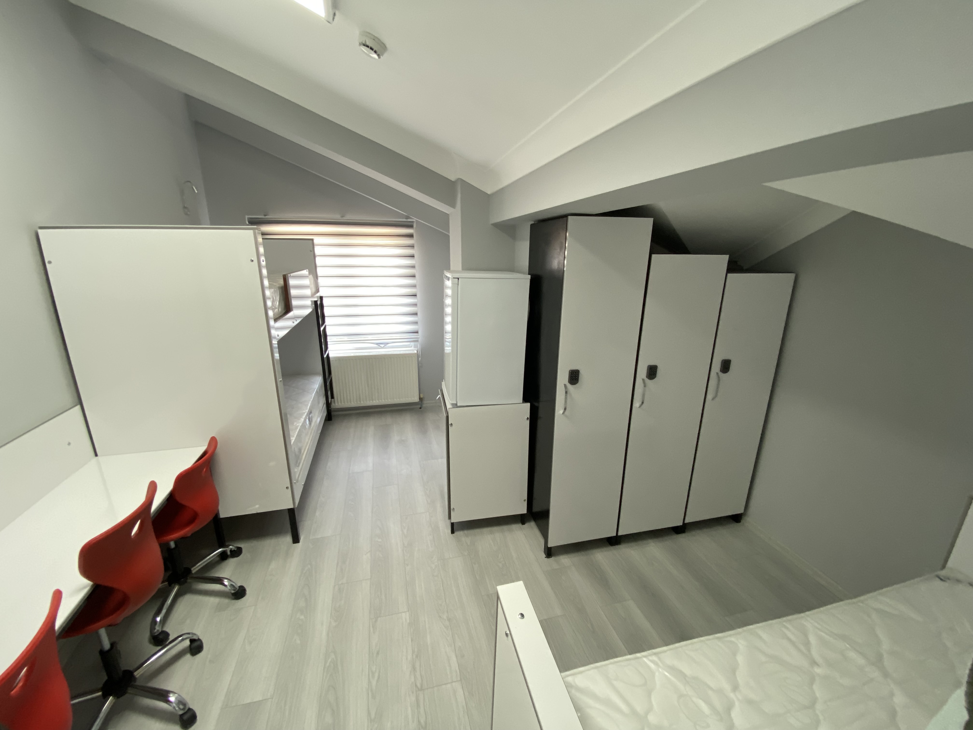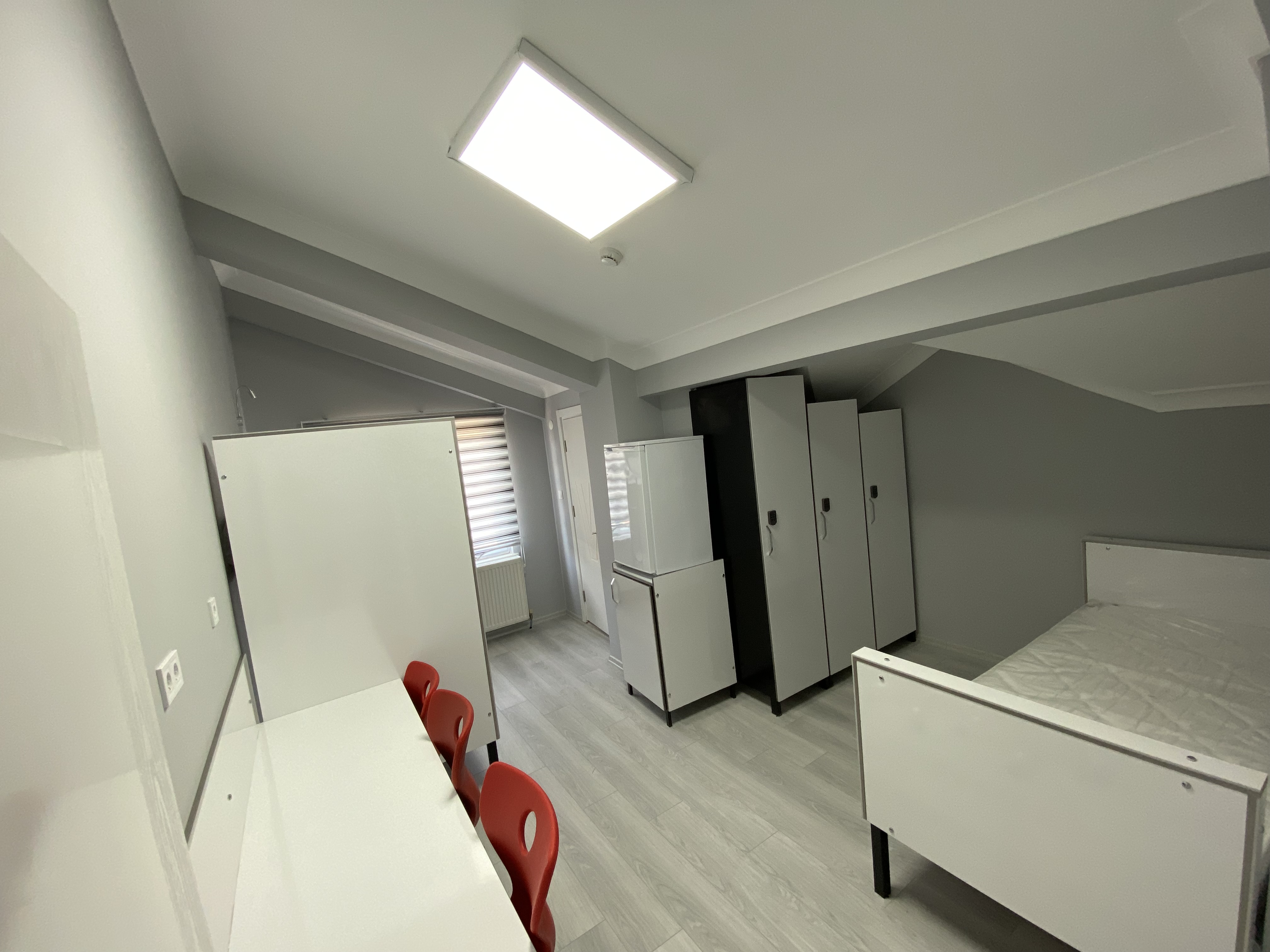 15 m²1-3 ve 4 kişilik olarak tasarlanmış odalardır, öğrencilerimizin rahatı ve konforu düşünülerek buzdolabı,kitaplık, çalışma masası, ortopedik yatak ve gardırop bulunmaktadır.